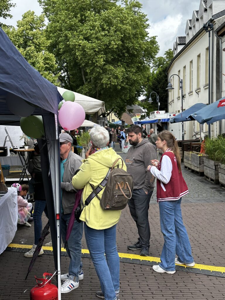 Den Anfang machte unser Flashmob in Solingen, doch am 25. Mai waren wir richtig präsent: Beim Maimarkt in Osterath durften wir sowohl auf der Bühne als auch mit einem eigenen Stand glänzen. Mit dabei: ein 30-minütiges Bühnenprogramm, viele selbstgebackene Kekse, kreative Postkarten und natürlich jede Menge gute Laune.