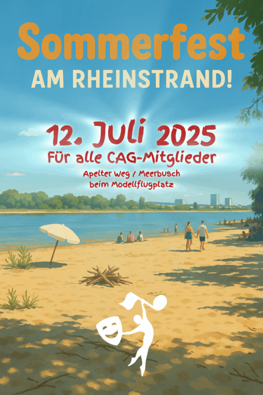 Je nach Wetterlage behalten wir uns vor, das Fest kurzfristig ins Vereinsheim zu verlegen – schaut also vorher nochmal in den CAG-Kalender oder Eure Mails.